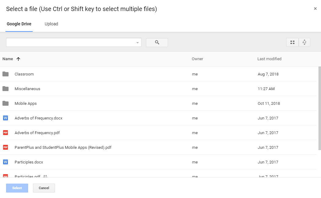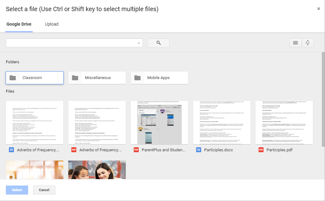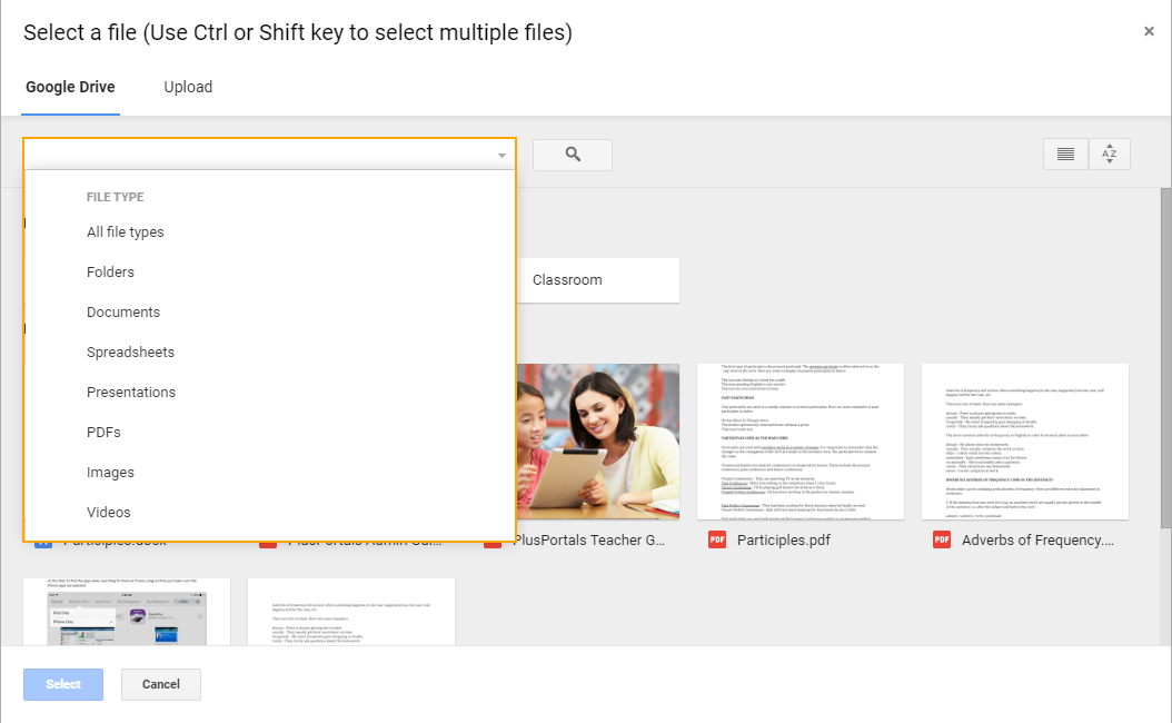 | Enhanced Google Drive Interface | The Google Drive interface allows users to search for files, see their folders, change between list view and grid view, upload to Google Drive and PlusPortals at the same time, and has no limit on the number of files that are accessible. | |