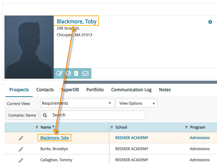 To access a prospect’s profile page, you can do either of the following: