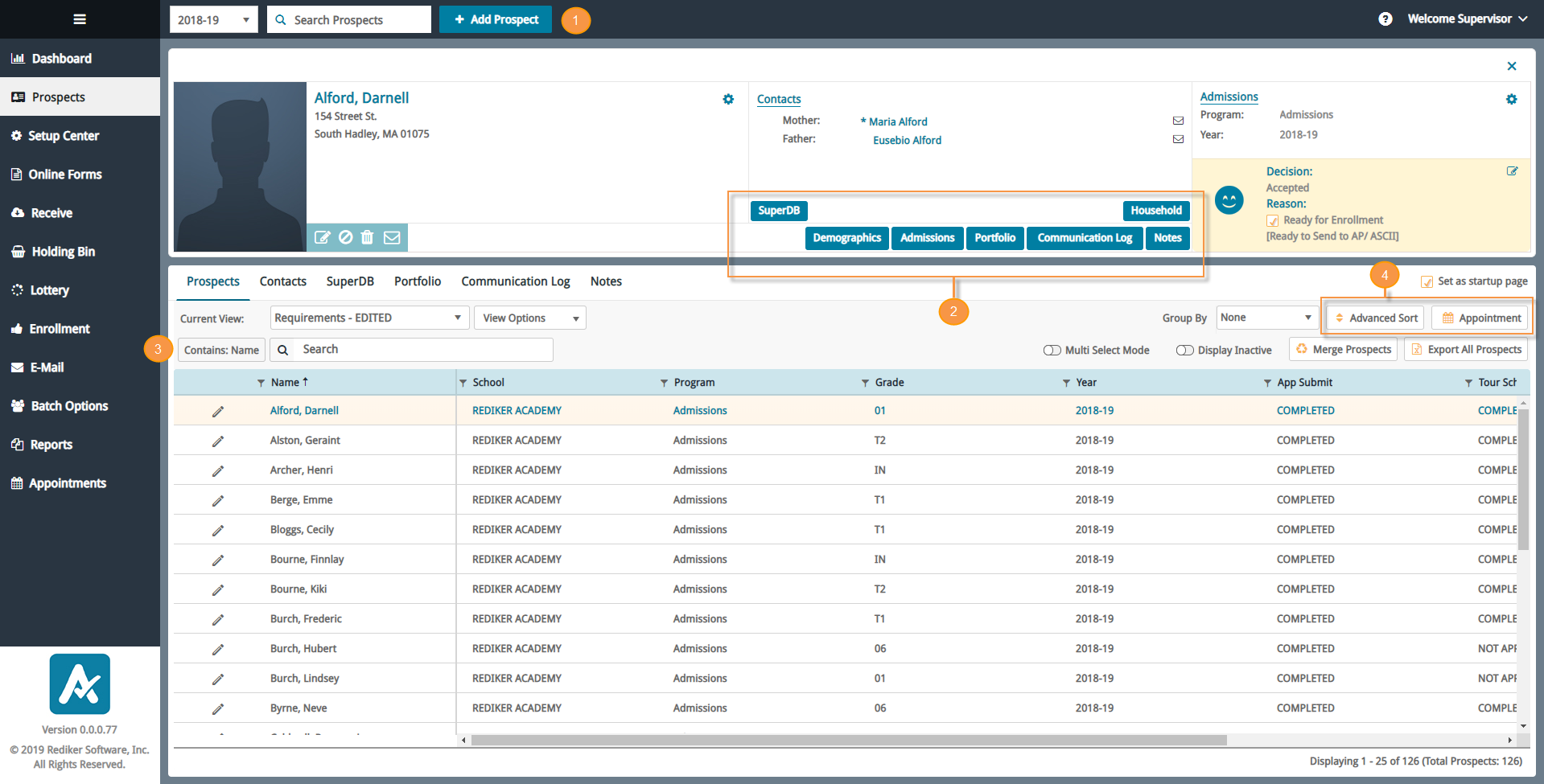 - When closing one of the Prospect Data windows, AdmissionsPlus would often switch focus to a different prospect. Focus now returns to the prospect whose data window you were viewing.