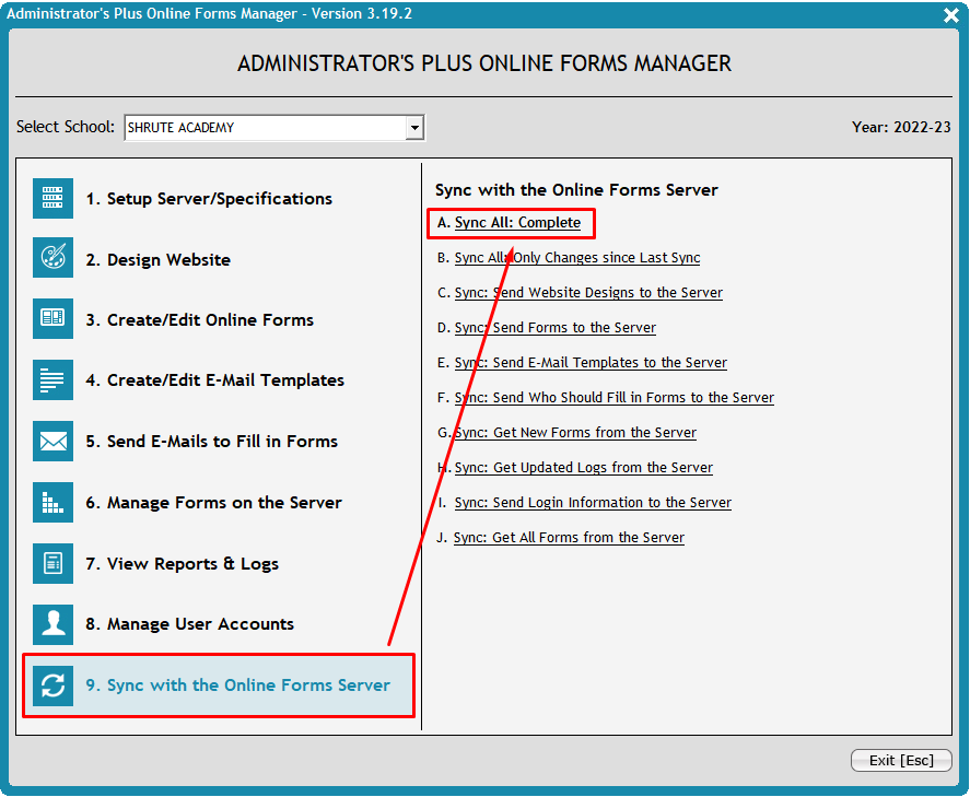3. Run a 9A: Sync All: Complete to update the Online Forms server with the results of running Update Login IDs.
