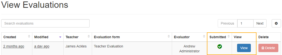 - Search for the submitted evaluation you want to unsubmit, and click View.