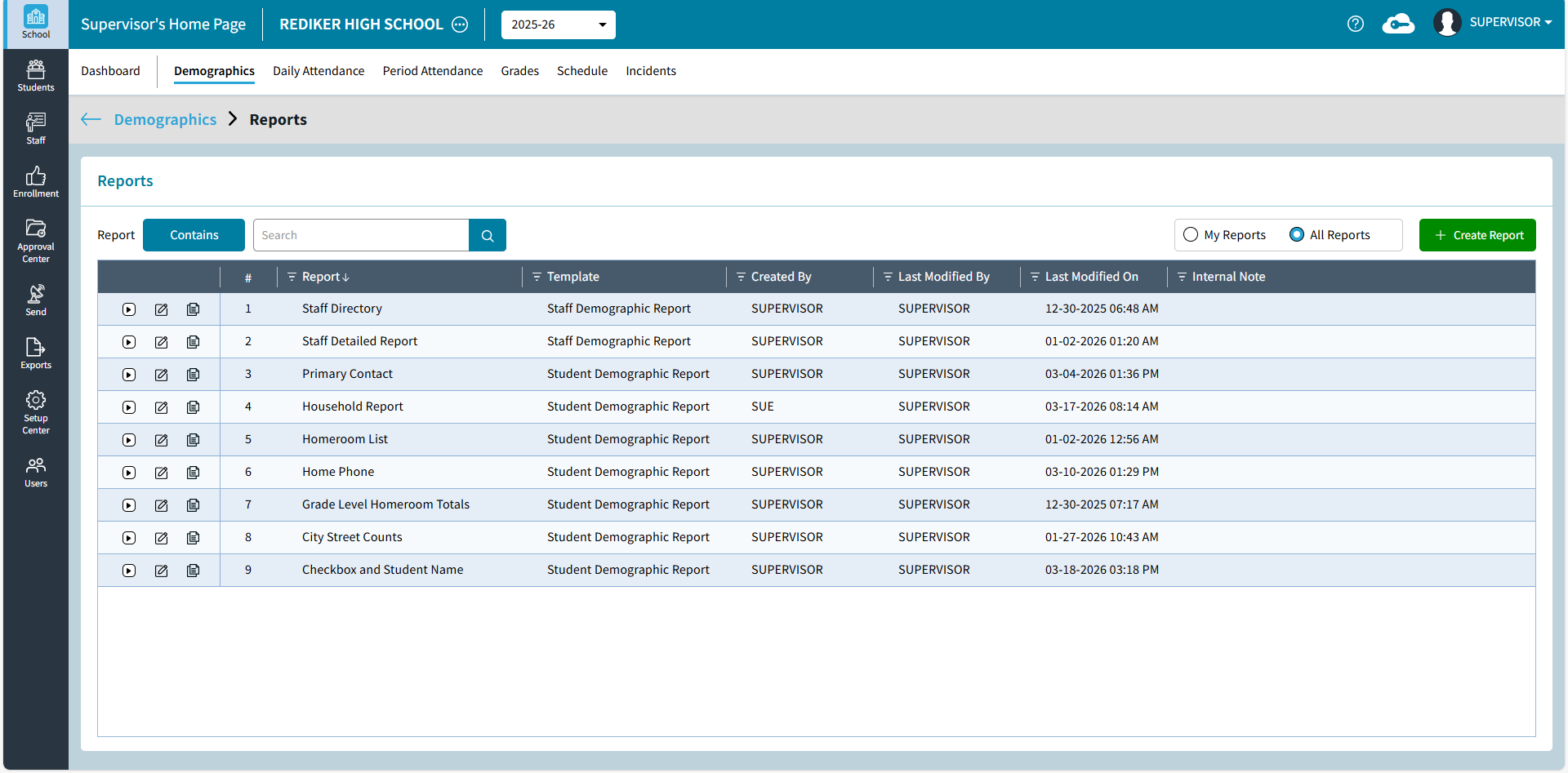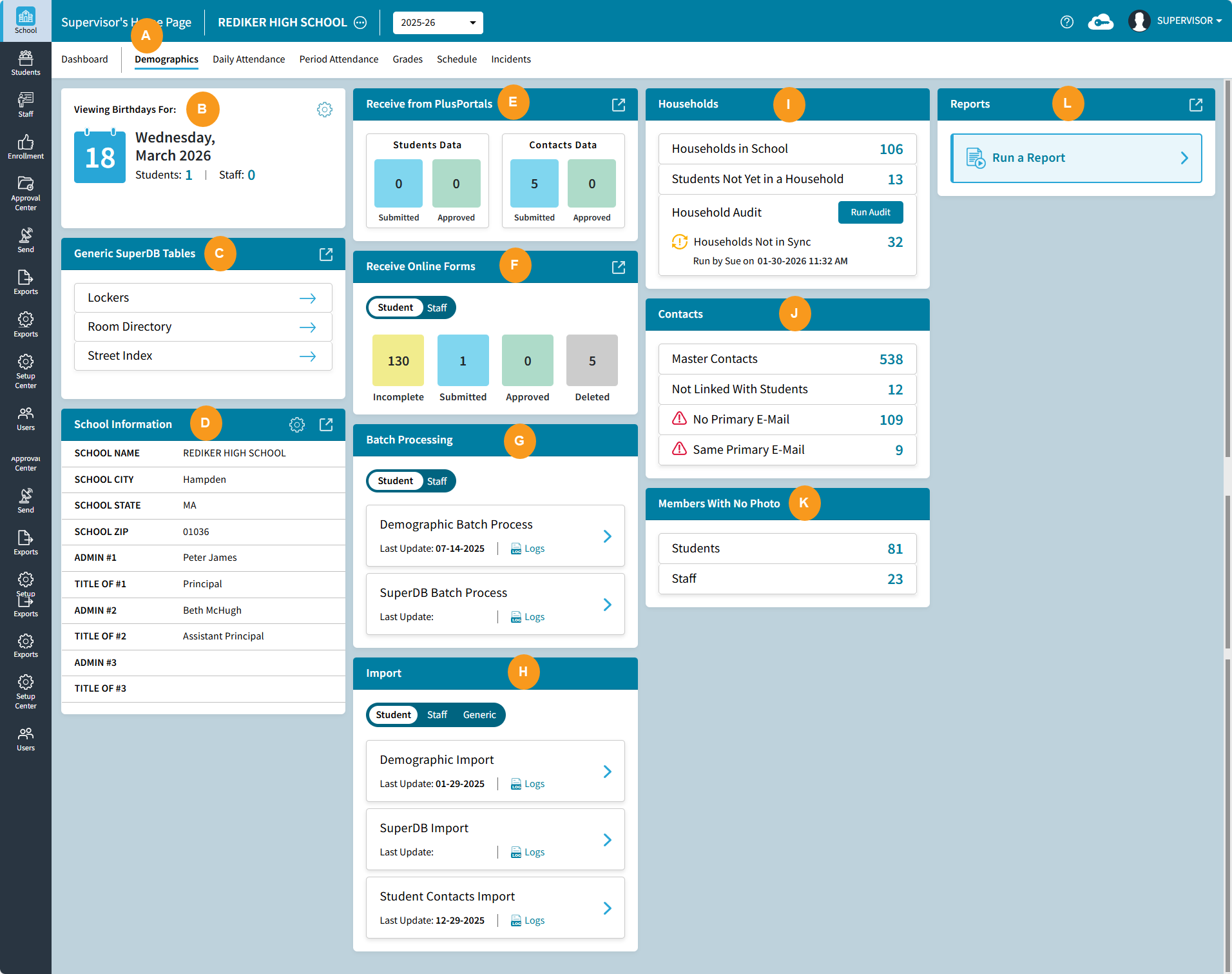 L | Run a Report - click to go to Reports. For more information see School: Demographics Reports.