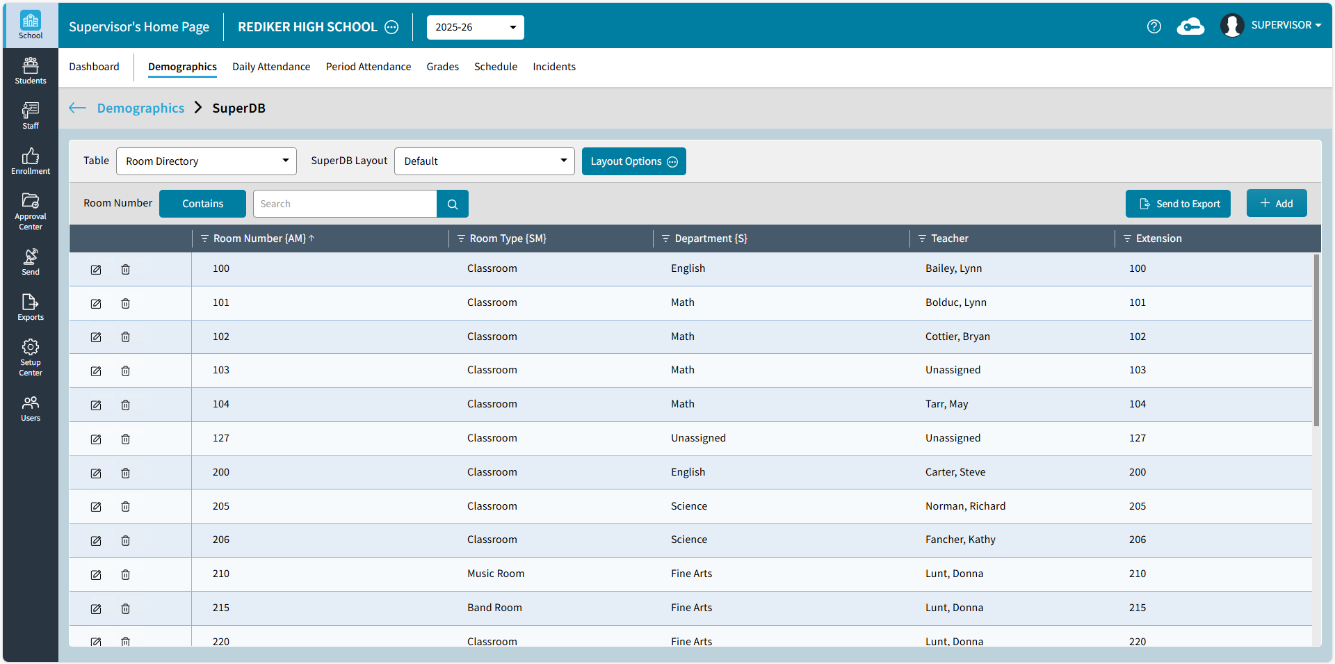 K | Members with No Photo: While on the School > Demographics screen, users can view which members do not have a photo. Select the number to view Students With No Photos or Staff With No Photos. Select Send to Excel to download the report to Excel. Select Print to generate a PDF of the report, which can be saved or printed.