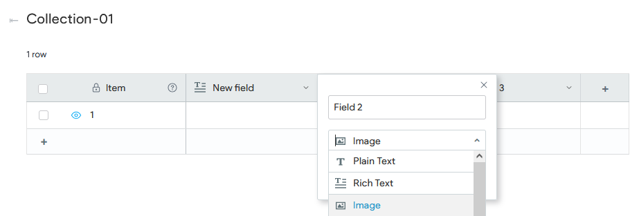 - Add/Edit Content in your Collection. The Columns represent your Fields of data and Rows represent entries or items.