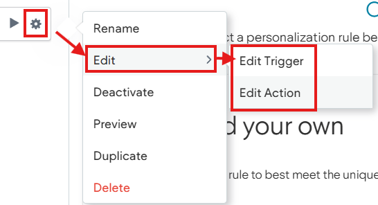 - It is always advised that you preview your rule. If you open the Personalize panel, you can click the Preview (Play) button next to your rule to preview it. Click Back in the upper right corner to exit the preview.
