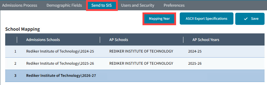 - Click on the Admissions year you want to map on the left, click the Mapping Year button.