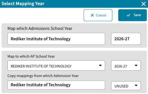 This mapping must be done for EVERY school year in which you are accepting students from Admissions.