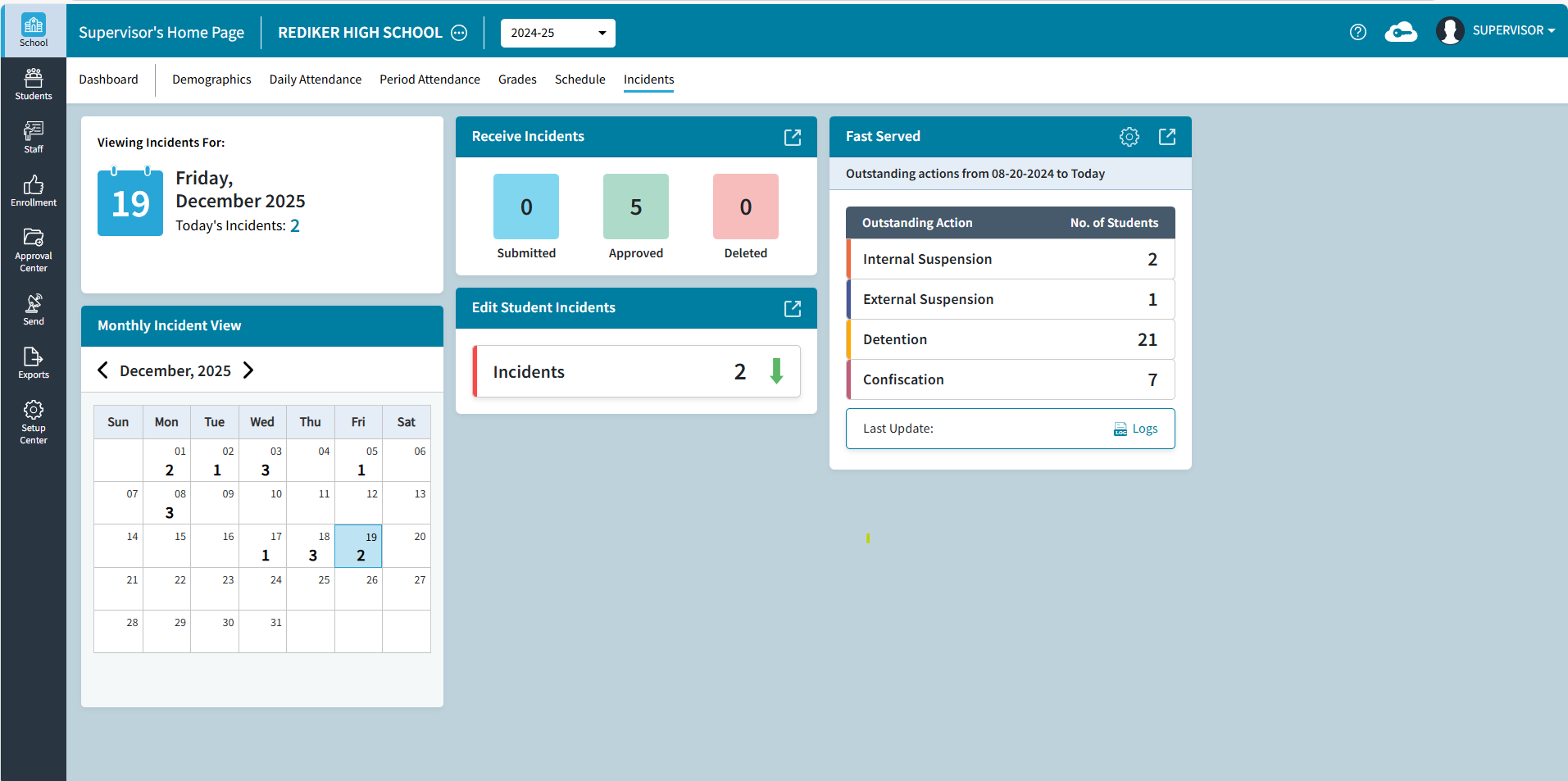For more information see School: Incidents Dashboard.